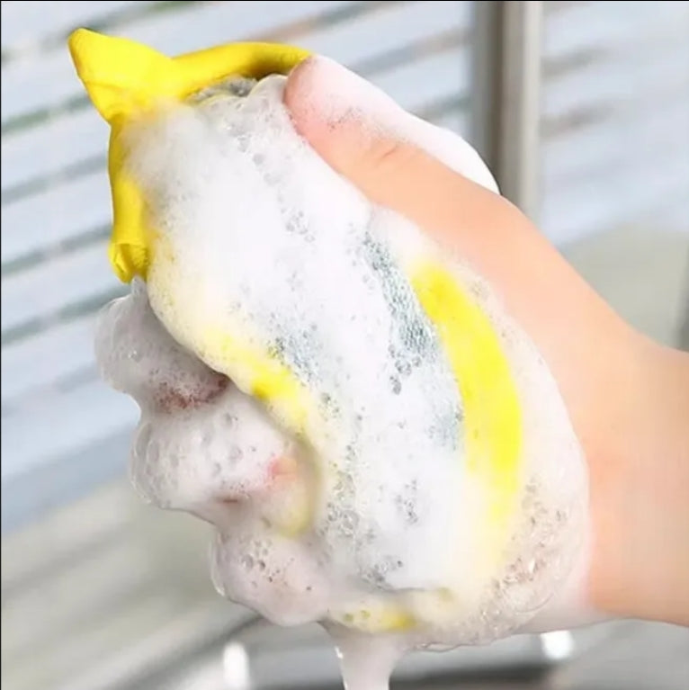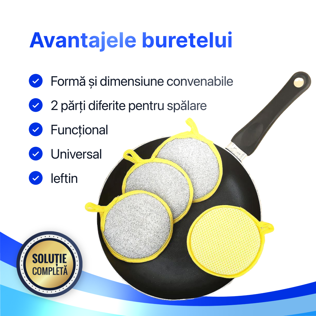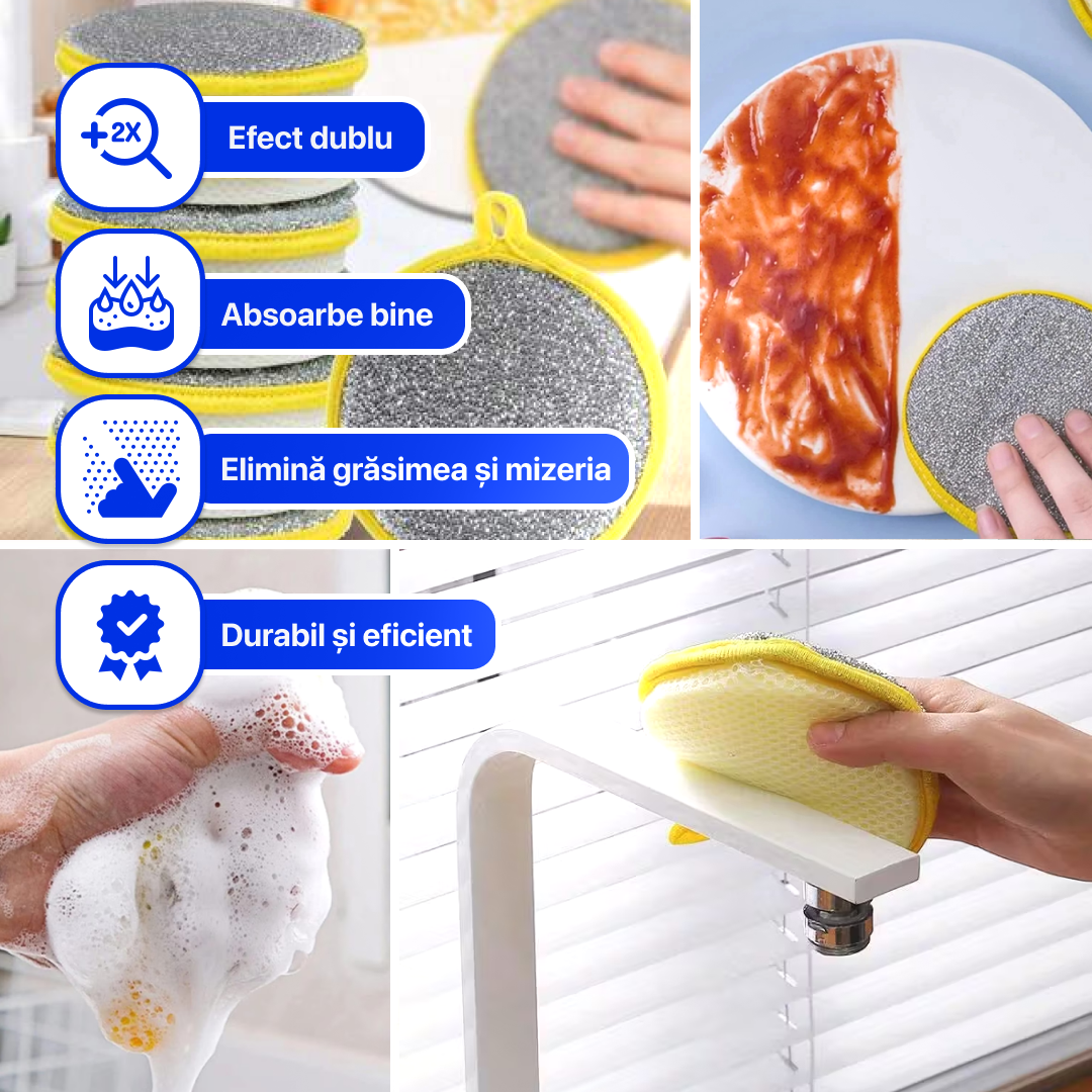 ✅ Dublă față – una moale pentru spălare delicată, cealaltă abrazivă pentru murdărie greu de îndepărtat