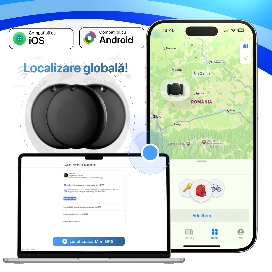 ✅ Compatibil cu iOS Apple Find My și Android Android Find Hub