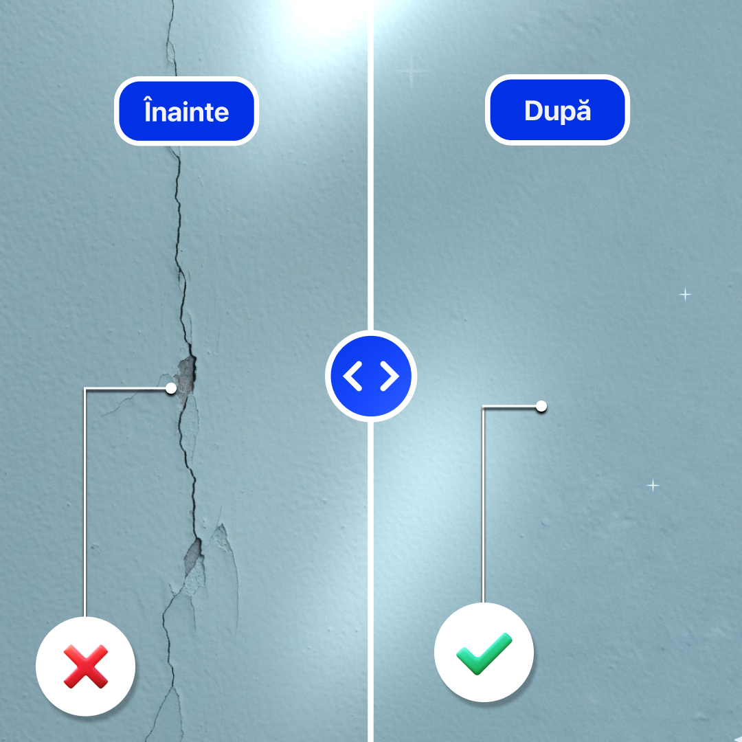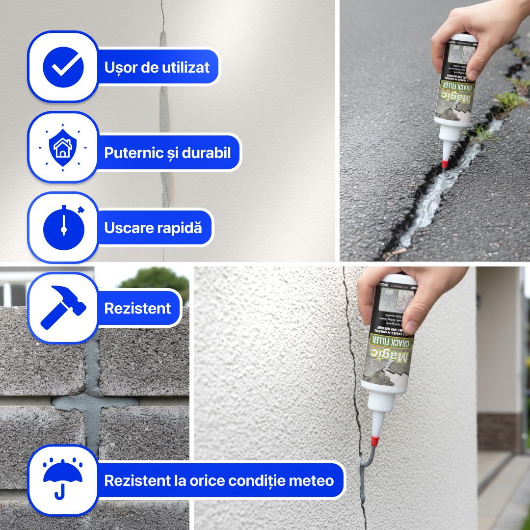 ✅ Repară instant orice tip de crăpătură – beton, asfalt, pereți, borduri, trotuare, faianță